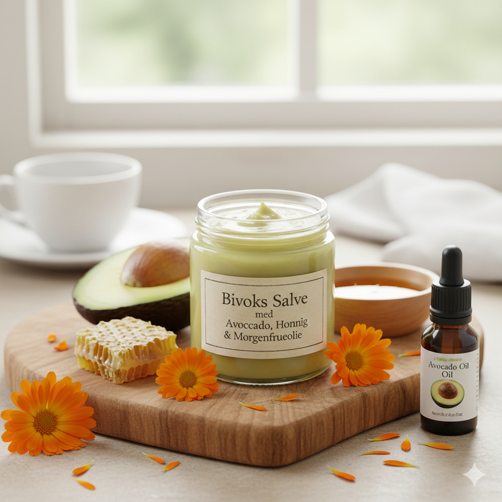 🕯️ Bivoks: 1. Struktur/Konsistensgiver: Gør salven fast. 2. Okklusiv/Barriere: Danner en beskyttende, vandafvisende hinde på huden, der fastholder fugt. 3. Beskyttende: Giver beskyttelse mod vind og kulde.